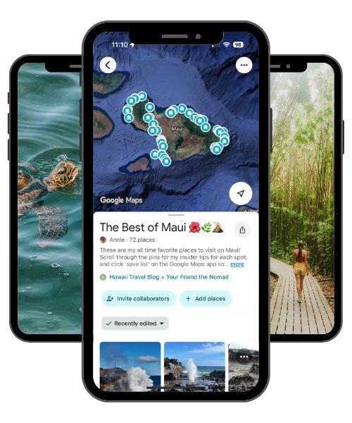 - My free Maui Google Map with all my favorite Road to Hana stops pinned for access on-the-go